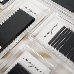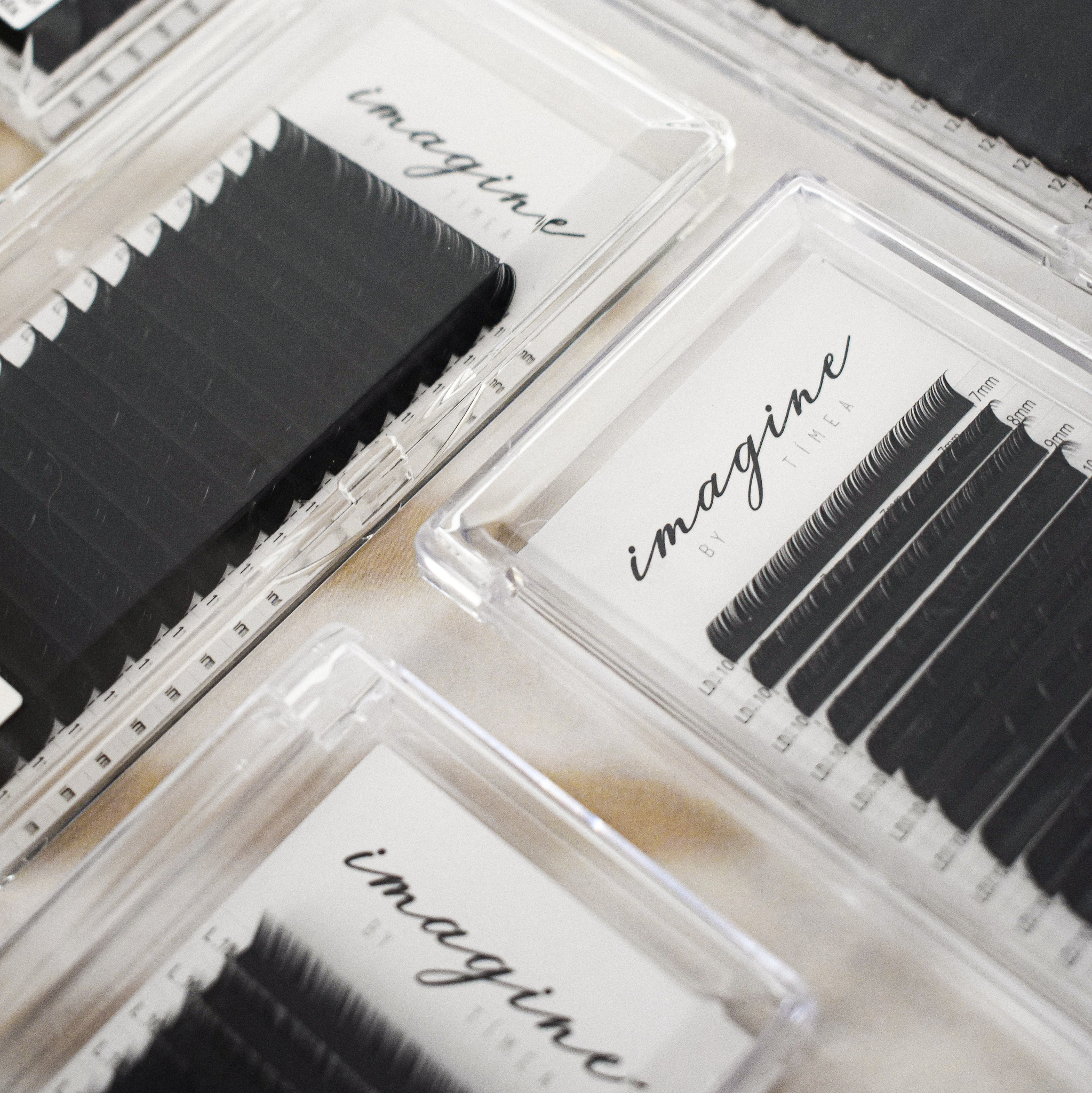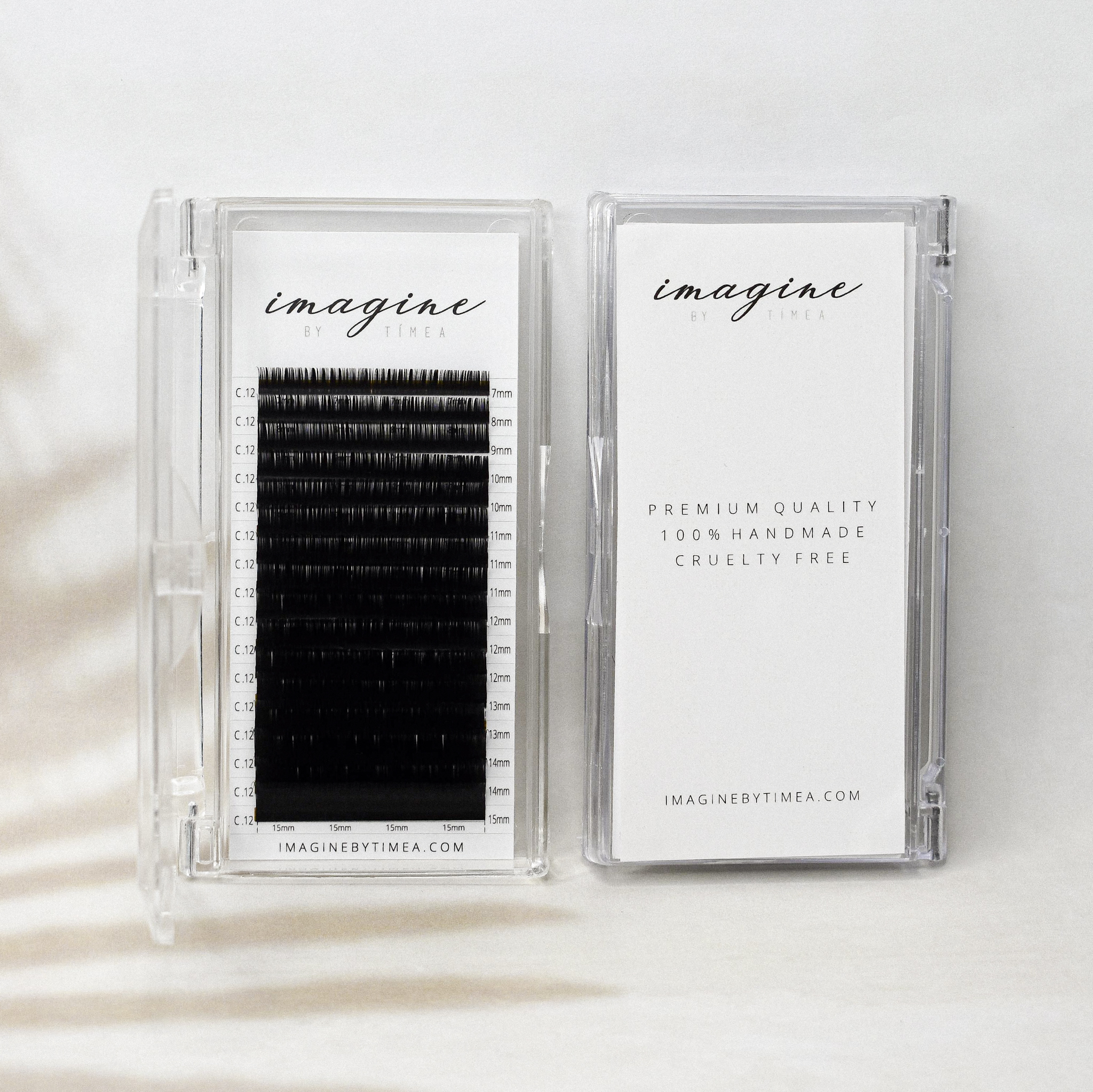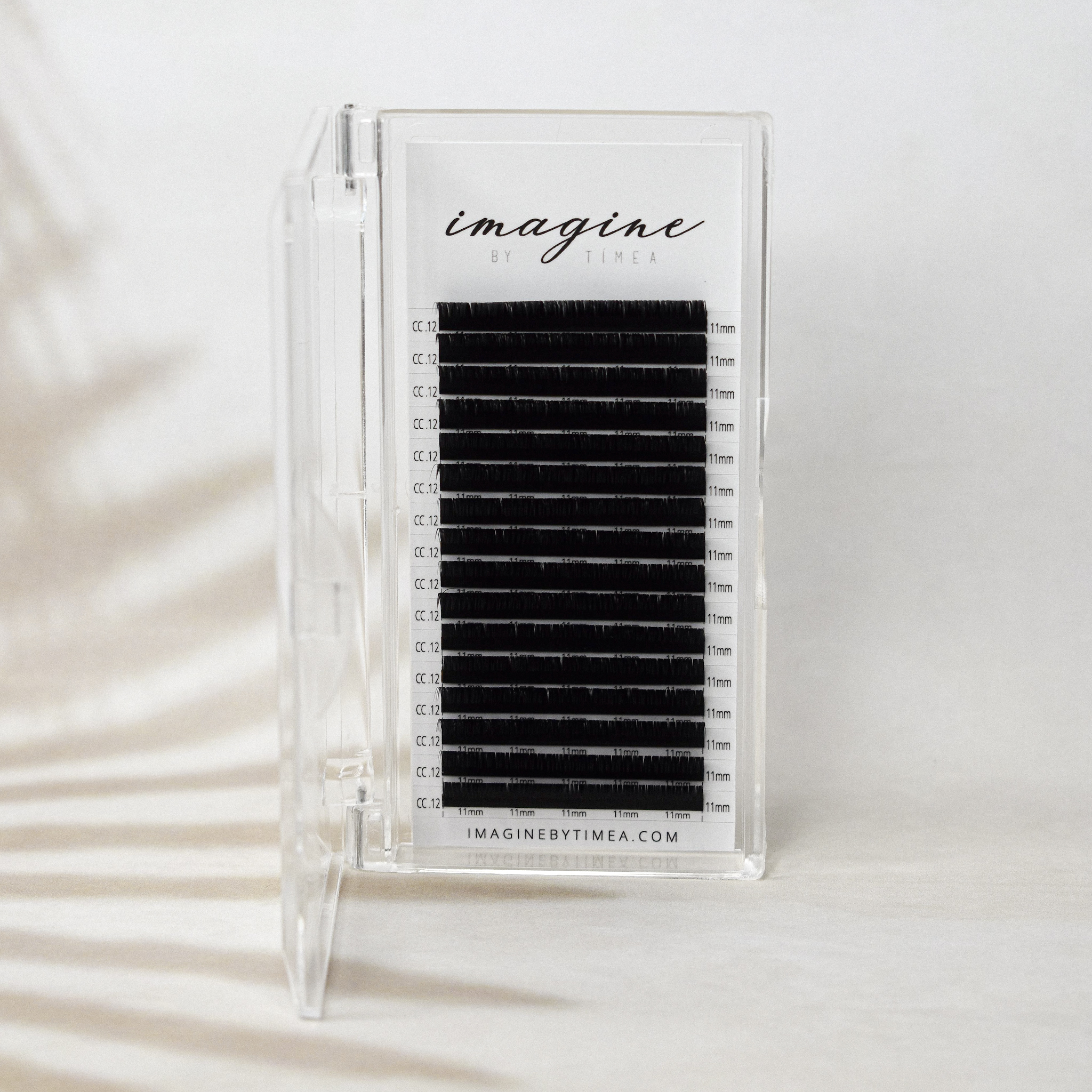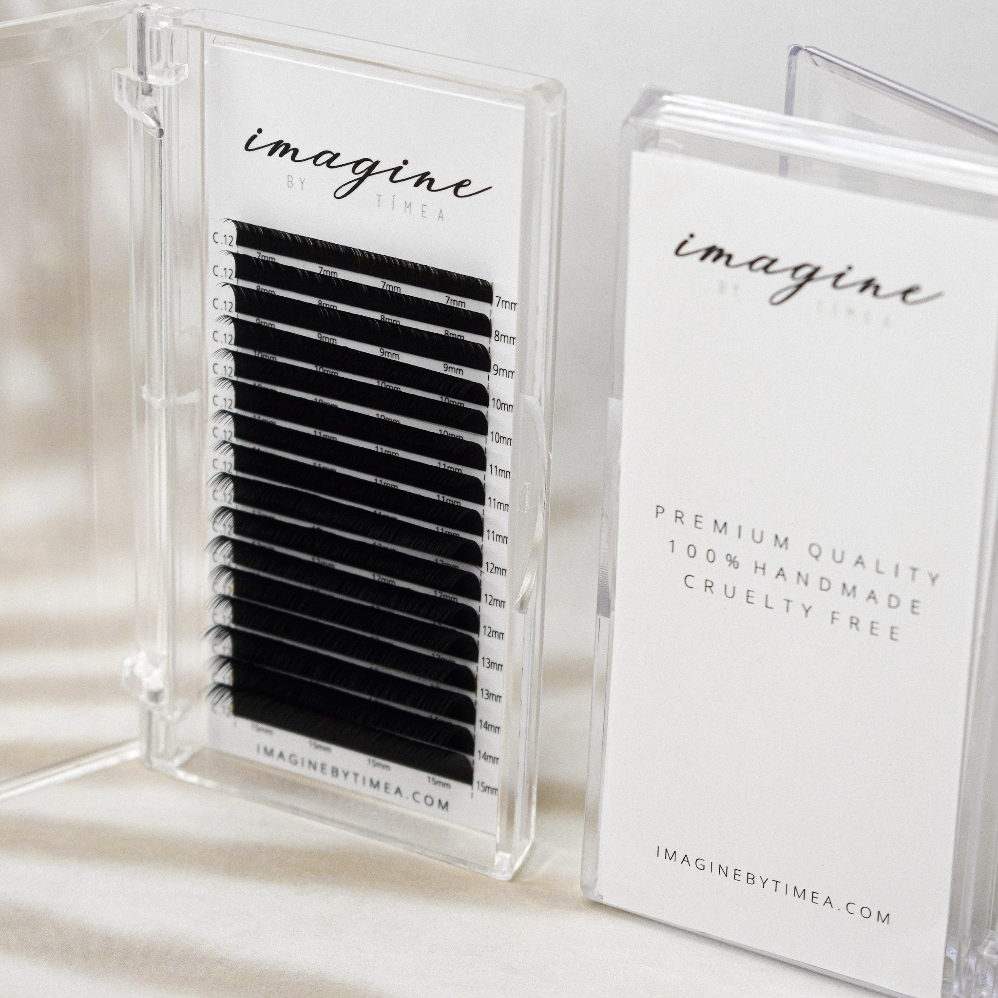 Las pestañas premium One Size de Imagine by Timea contienen 16 líneas de pestañas de un mismo tamaño con indicaciones de sus características en cada línea.